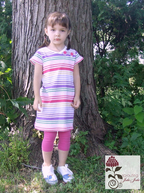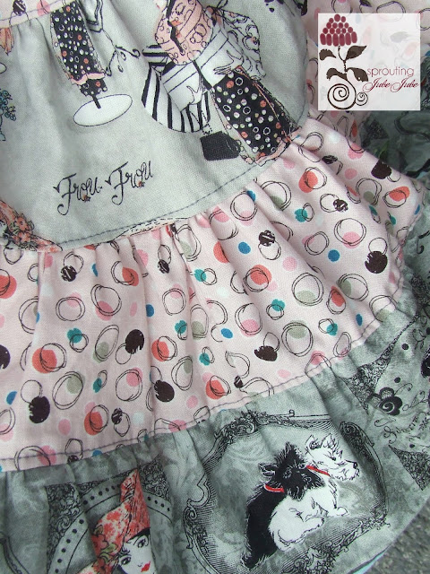 I love all the little details like the ruffles on the front bib and pockets, the sash in the back to give it just enough of a girly look and the loose relaxed fit of this pattern.