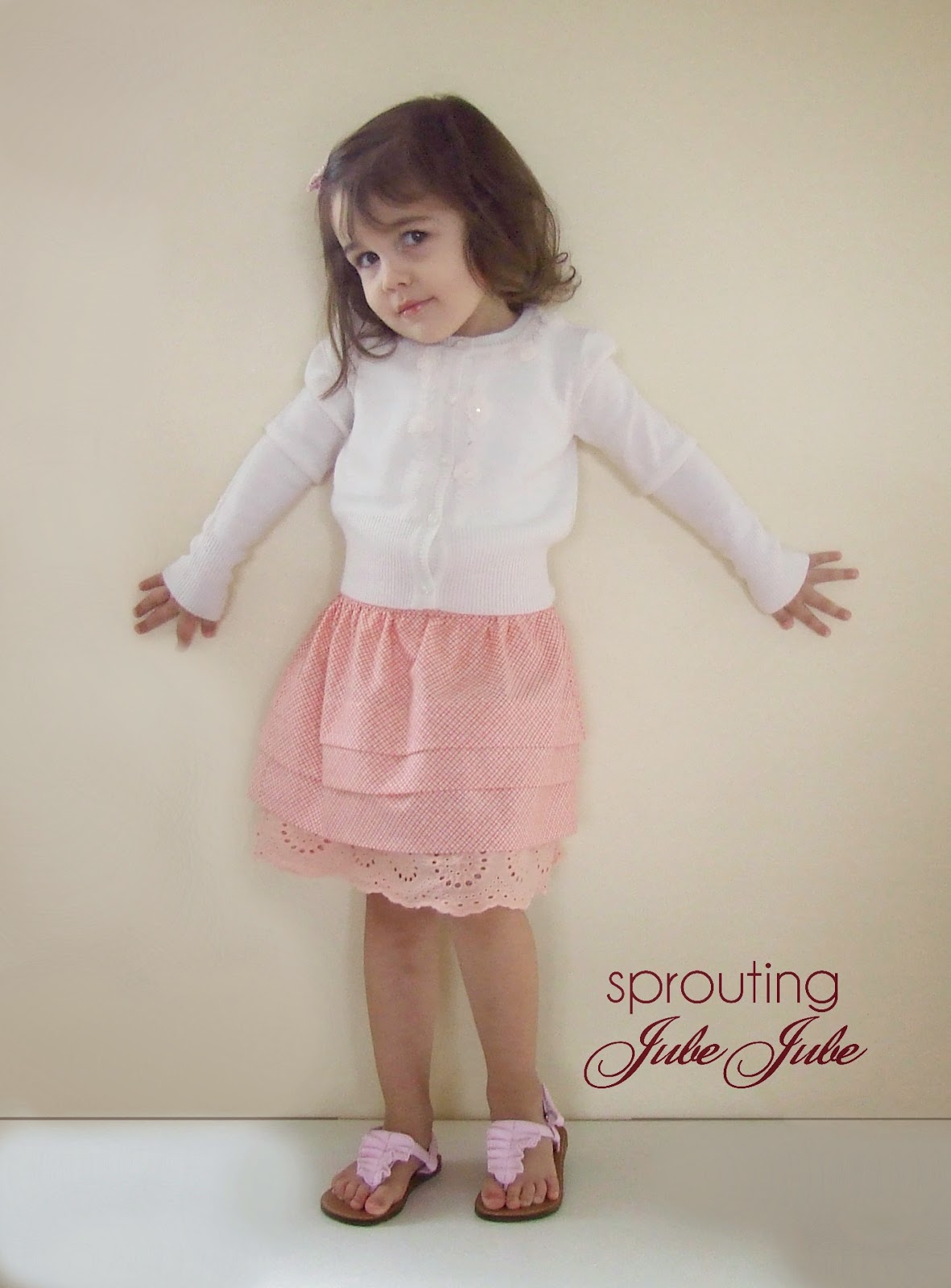 Continue sewing as indicated in the tutorial, Girls Skirt Pattern No.5 by E+M Patterns.
