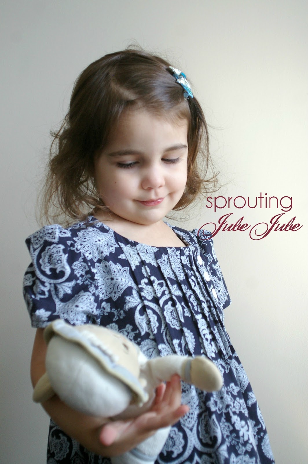 saving hoarding this fabric, Lily and Willy by Bunny Hill for Moda Fabrics, for about three years now and I think I used it for the most perfect Easter dress. The only regret that I would have is that I didn't have enough fabric to make that beautiful bow that's featured in this pattern so I had to make the simple sash instead.