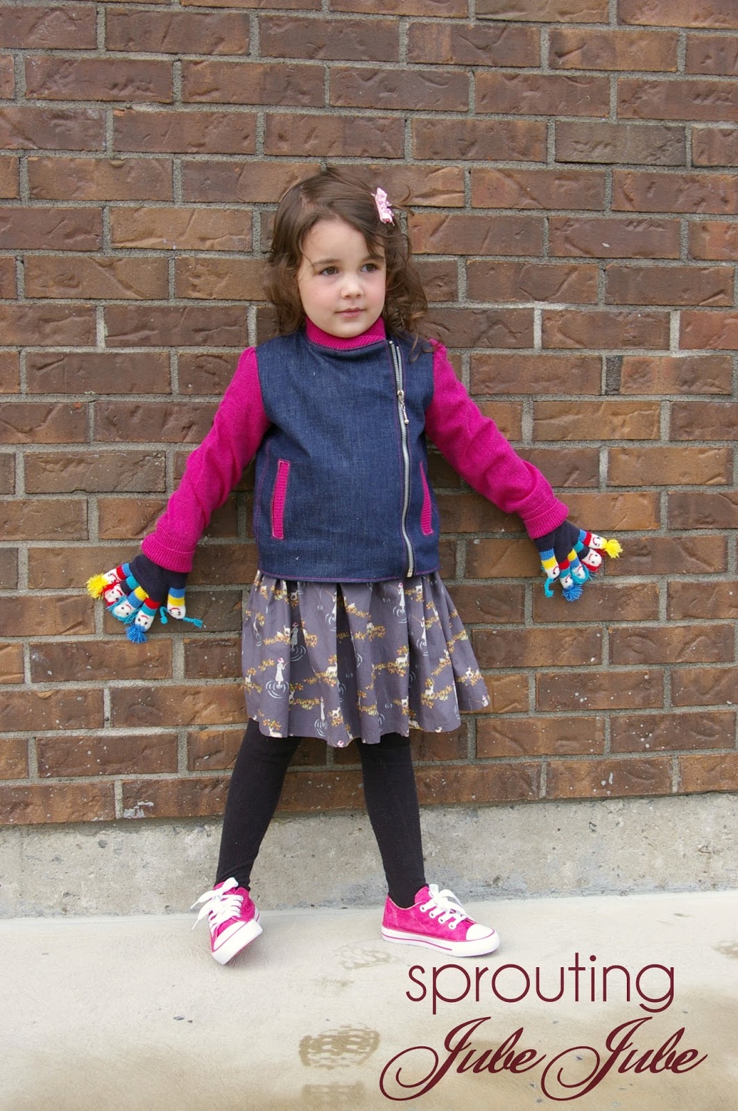 If you didn't have a chance to sew along with us you can still pick up the pattern in the Jennuine Design Pattern Shop*, you can still get it at $6.00 (reg. $10.00) until December 13, 2015, use the code "MOTOSEWALONG" at checkout. While you're there take a look at all the other fun patterns available...JubeJube's favorite leggings are the Dressage Leggings, I must admit I really like the fit on her too.